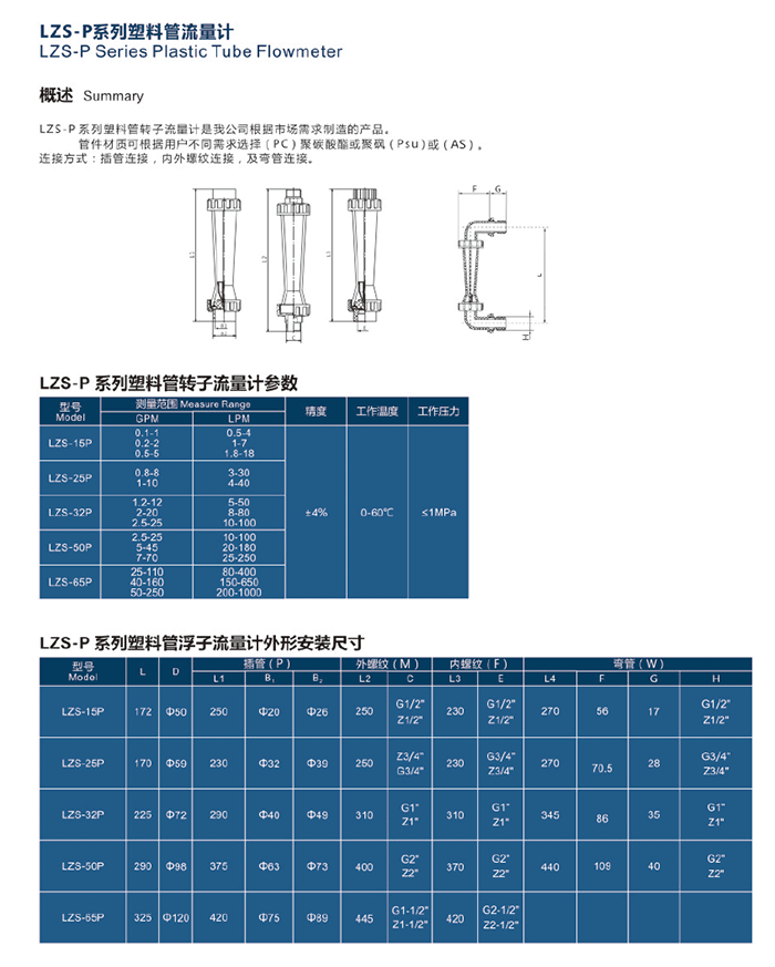 LZS-P系列塑料管流量计