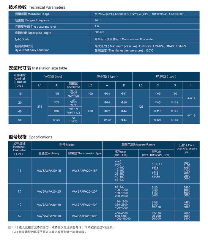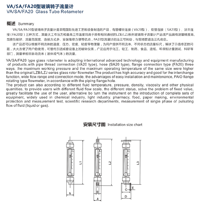 LZB-VA/SA/FA20型玻璃转子流量计