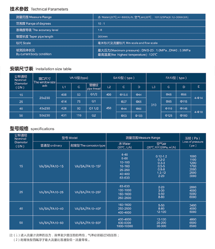 LZB-VA/SA/FA10型玻璃转子流量计